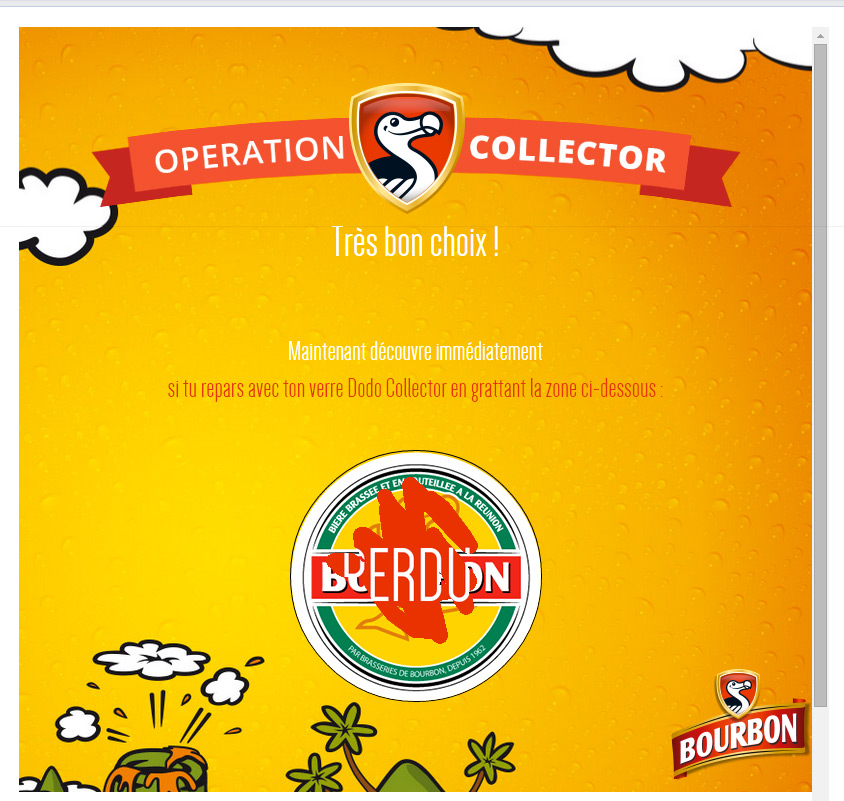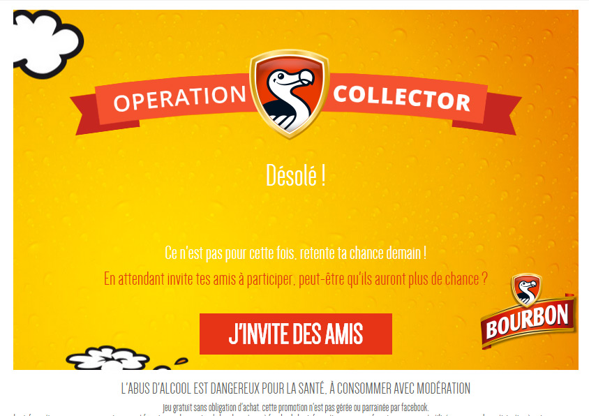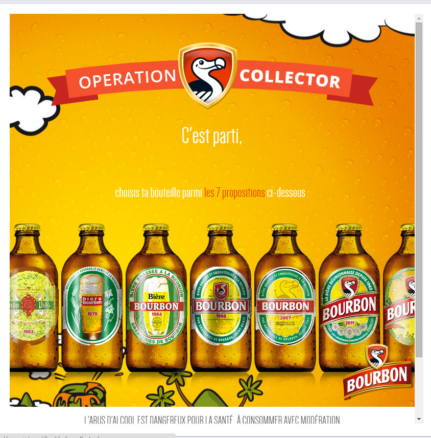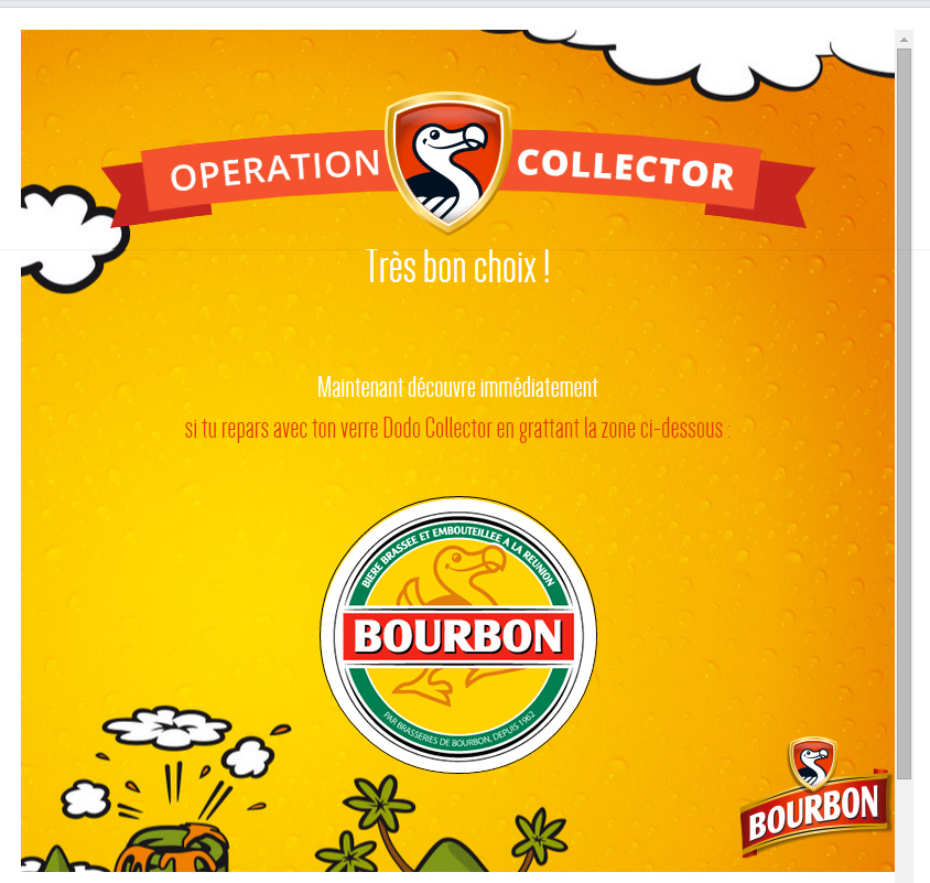 Jeux évènementiel sur une mécanique de type instant gagnant pour les consommateurs des Brasseries de Bourbon.