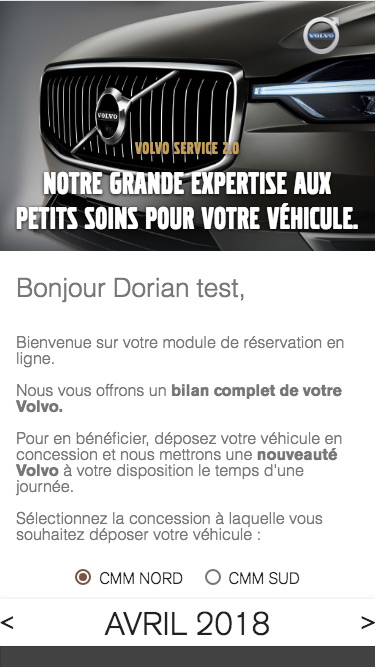 Application web et mobile pour effectuer des prises de rdv chez les concessionnaires du groupe Volvo. Développement d'une mécanique d'agenda avec notifications sms.